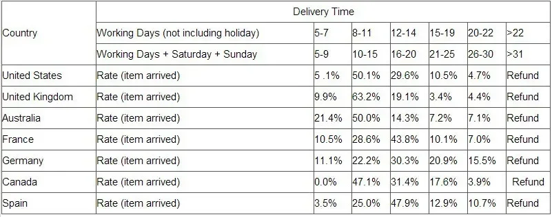 7. Due to stock status and time differences, we will choose to ship your item from our first available warehouse for fast delivery.