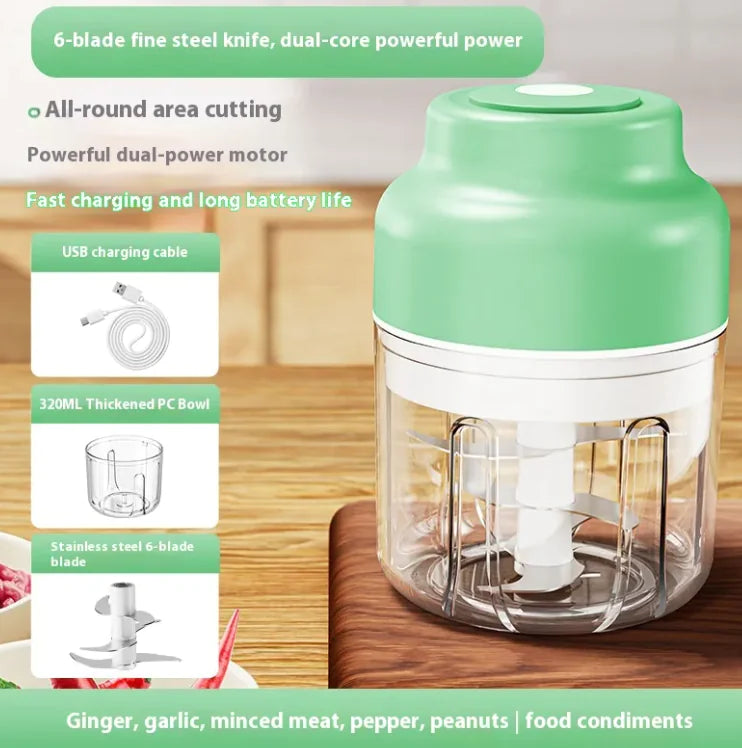 Transform the way you prepare garlic with the sleek and powerful Electric Garlic Masher. Designed for modern kitchens, this handy tool makes mincing, chopping, and grinding garlic effortless and efficient. With an upgraded 4-leaf and 6-leaf knife system, it ensures a perfect consistency every time. Available in three stylish colors: Blue, Green, and Purple, it's the ideal gift for any cooking enthusiast or anyone looking to save time in the kitchen.